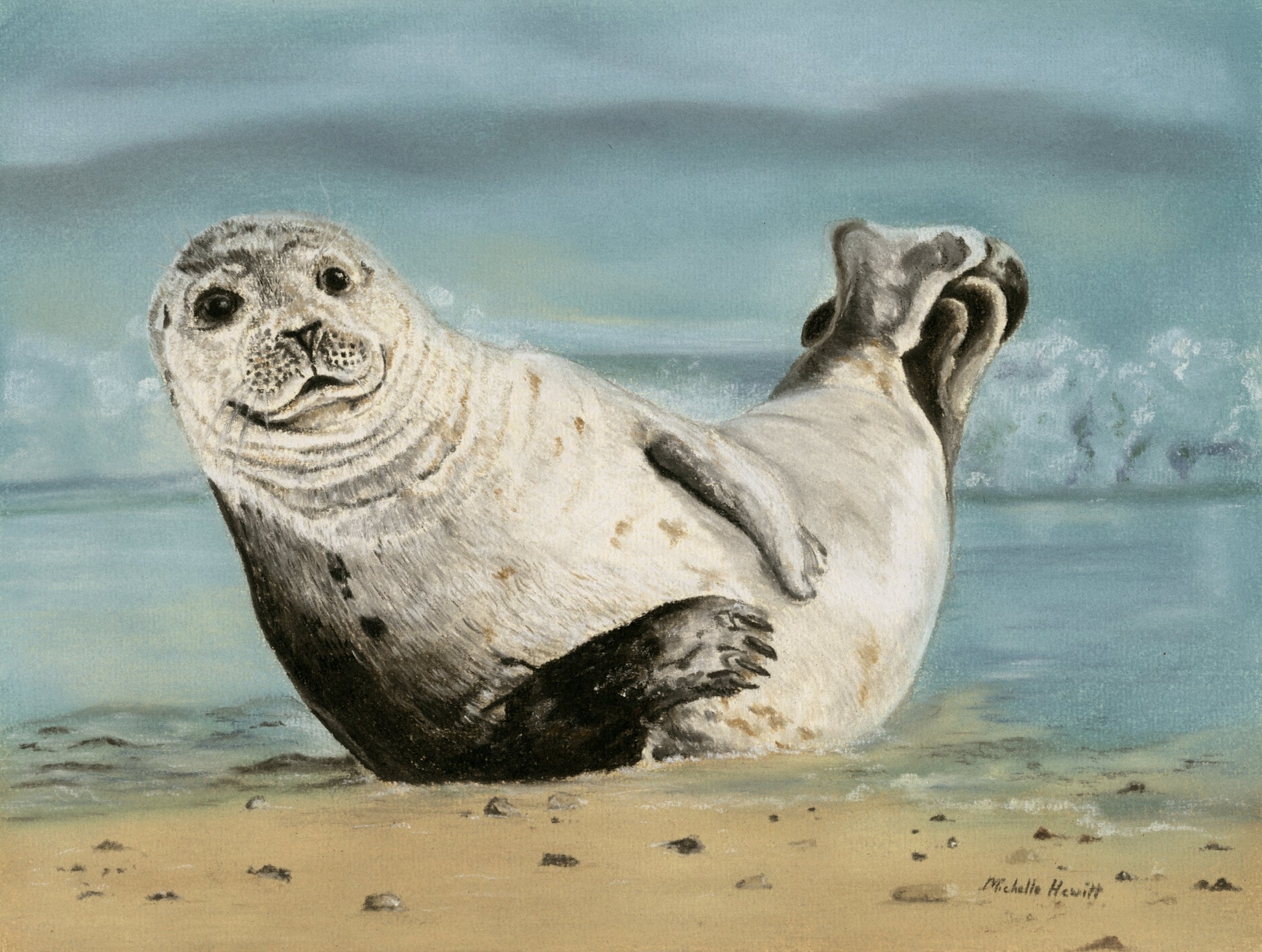 Print of original soft pastel artwork of a seal by Michelle Hewitt.