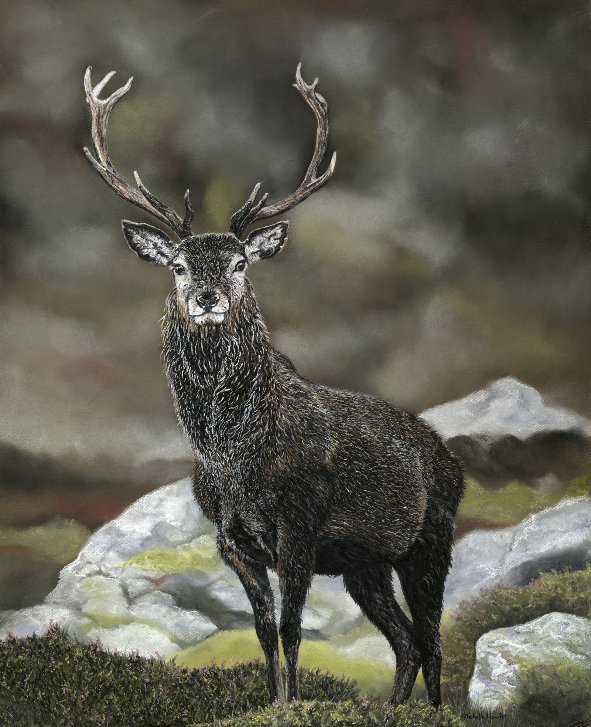 Print of original soft pastel artwork of a highland stag by Michelle Hewitt.